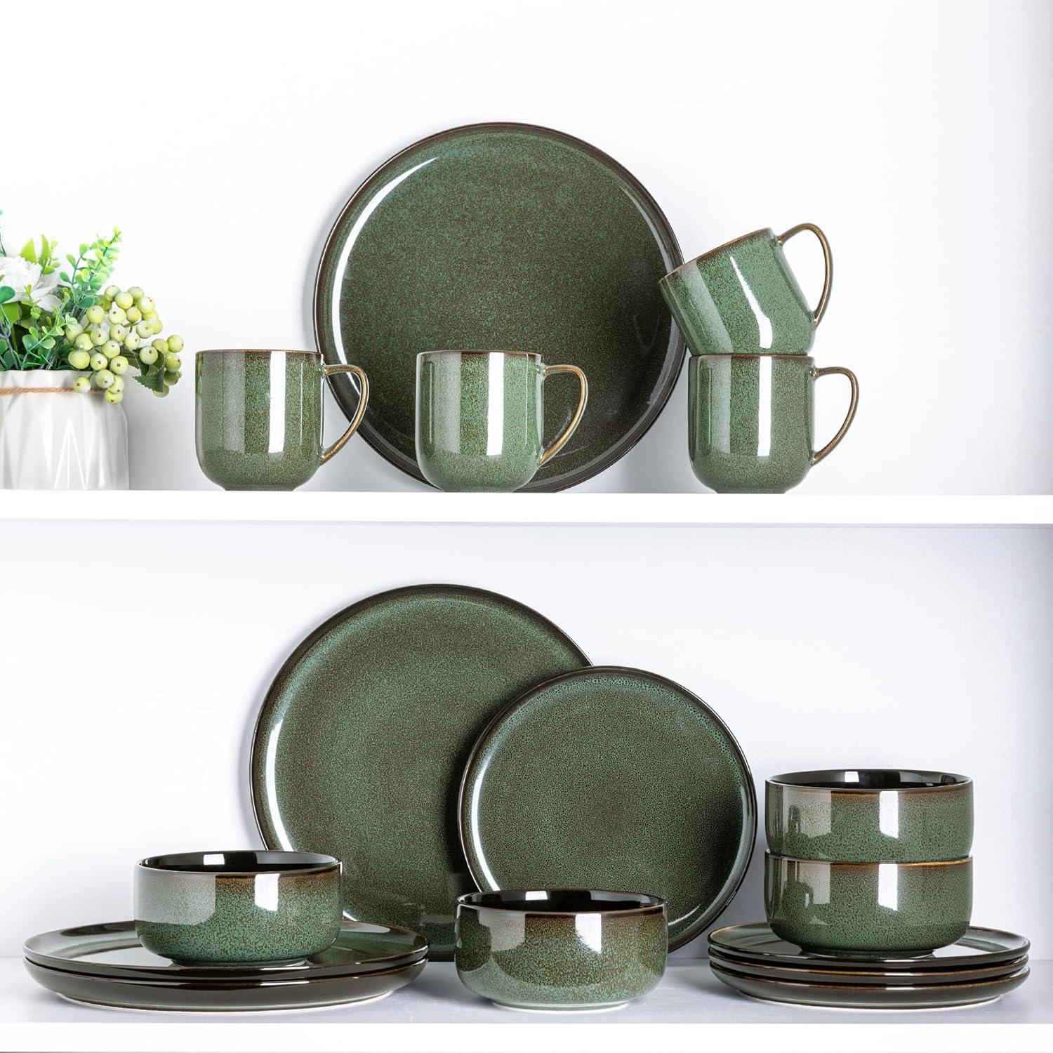 LERATIO Ceramic Dinnerware Sets for 4,Porcelain Plates and Bowls Sets,Handmade Reactive Glaze Dishes Set,Chip Resistant and Scratch Resistant | Oven&Dishwasher & Microwave Safe,Service for 4(Modern-Dark Green)