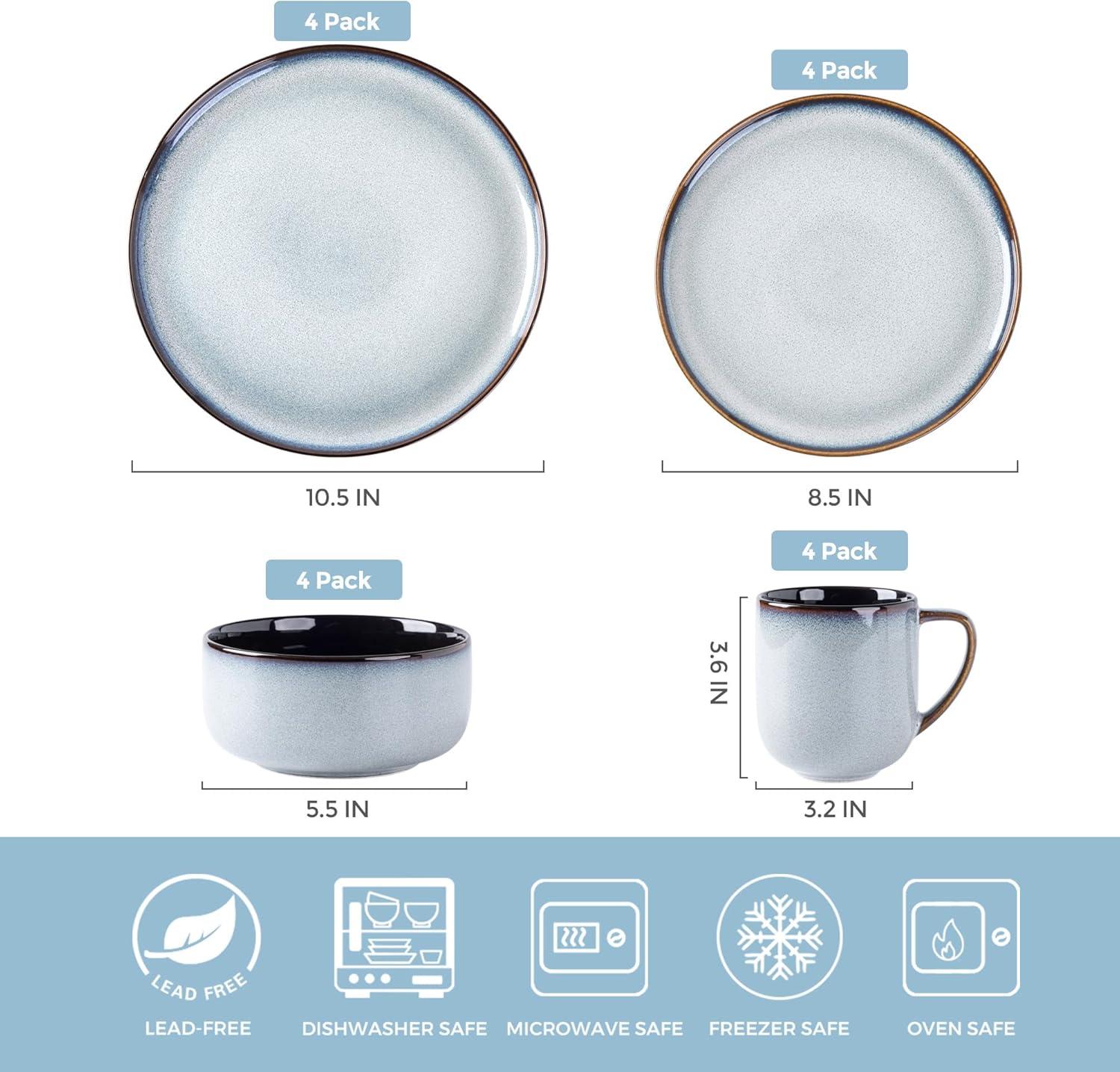 【WHAT YOU WILL RECEIVE】 This 12-piece dinnerware set includes 4 x 10.5-inch dinner plates, 4 x 8.25-inch salad plates, and 4 x 24 oz cereal bowls. Ideal for small families, couples, or individuals, this set perfectly meets all your dining needs with four complete place settings.