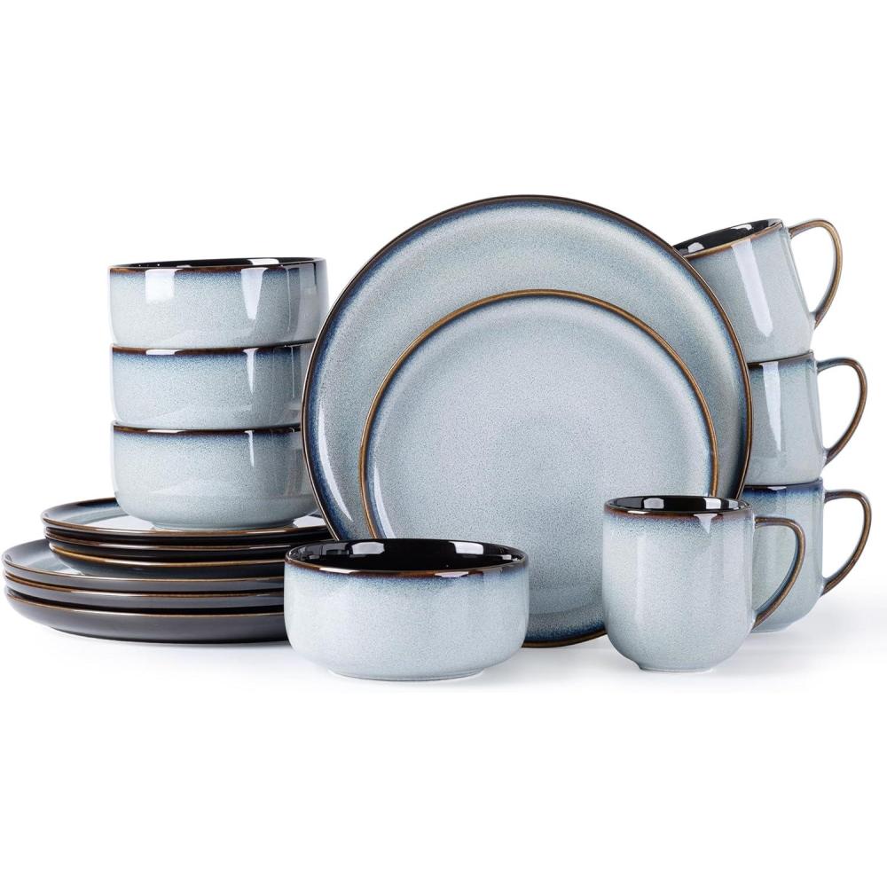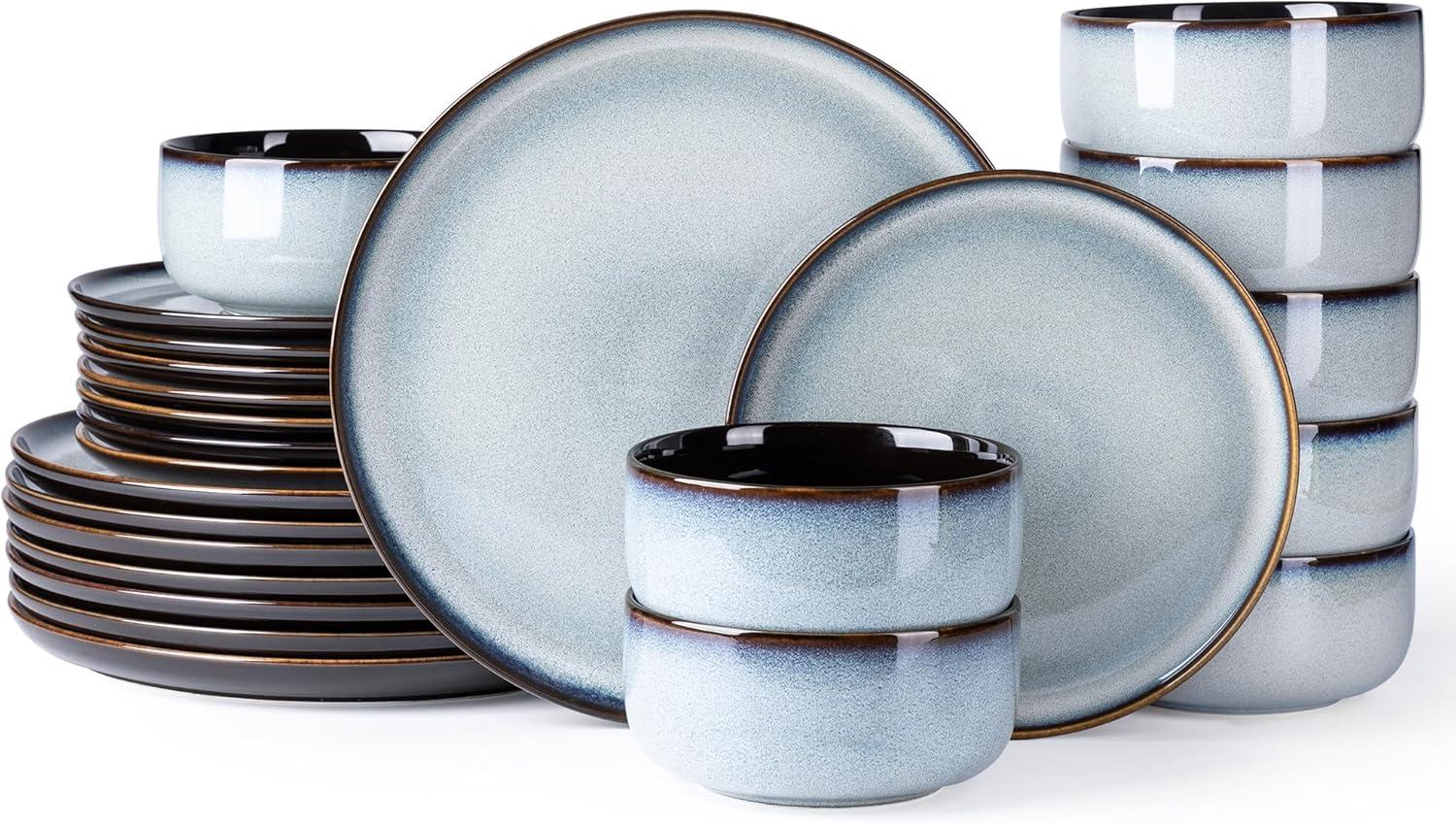 image:imageLERATIO Ceramic Dinnerware Sets for 4Porcelain Plates and Bowls SetsHandmade Reactive Glaze Dishes SetChip Resistant and Scratch Resistant  OvenampDishwasher amp Microwave SafeService for 4ModernDusk Snow Amber