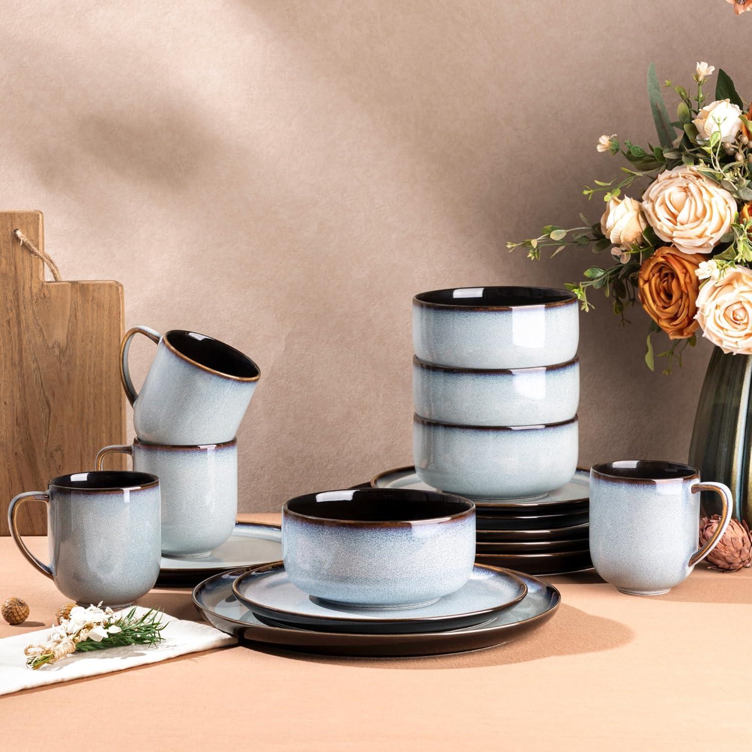 LERATIO Ceramic Dinnerware Sets for 4,Porcelain Plates and Bowls Sets,Handmade Reactive Glaze Dishes Set,Chip Resistant and Scratch Resistant | Oven&Dishwasher & Microwave Safe,Service for 4(Modern-Dusk Snow Amber)