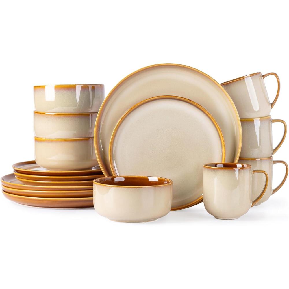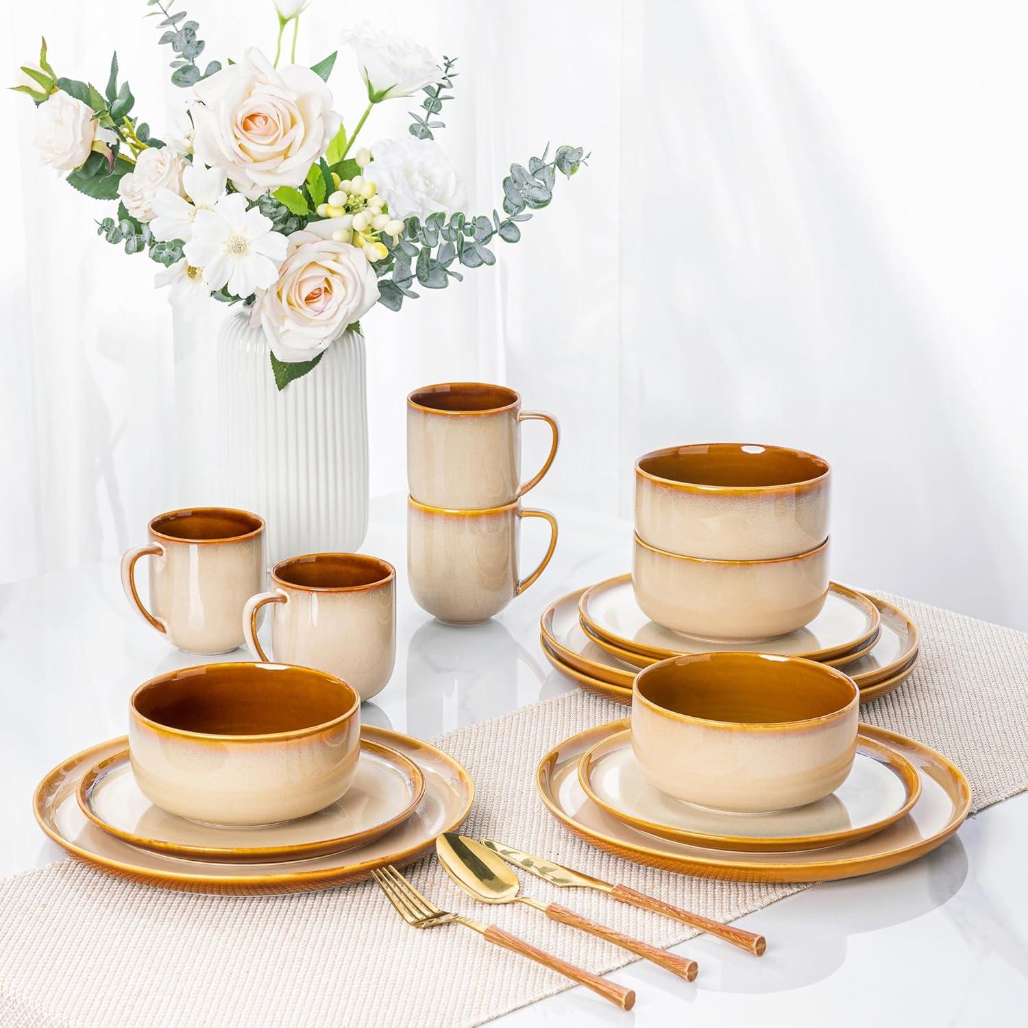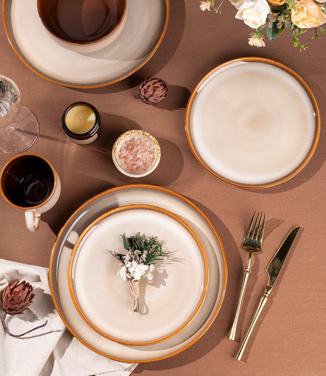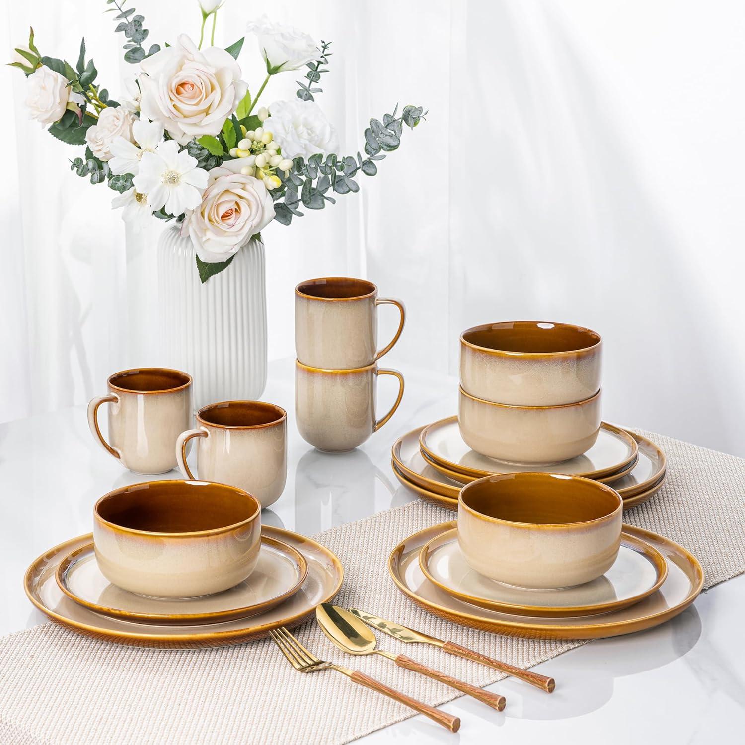 LERATIO Ceramic Dinnerware Sets for 4,Porcelain Plates and Bowls Sets,Handmade Reactive Glaze Dishes Set,Chip Resistant and Scratch Resistant | Oven&Dishwasher & Microwave Safe,Service for 4(Modern-Kahki)